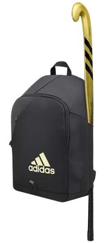 The adidas VS 6 Field Hockey Backpack features a large compartment for equipment including a laptop sleeve and external velcro straps to hold one field hockey stick. Smaller front pocket and valuables pocket +on the top of the bag. Ergonomic padded back and padded, adjustable shoulder straps. Water repellent base fabric to protect your gear.