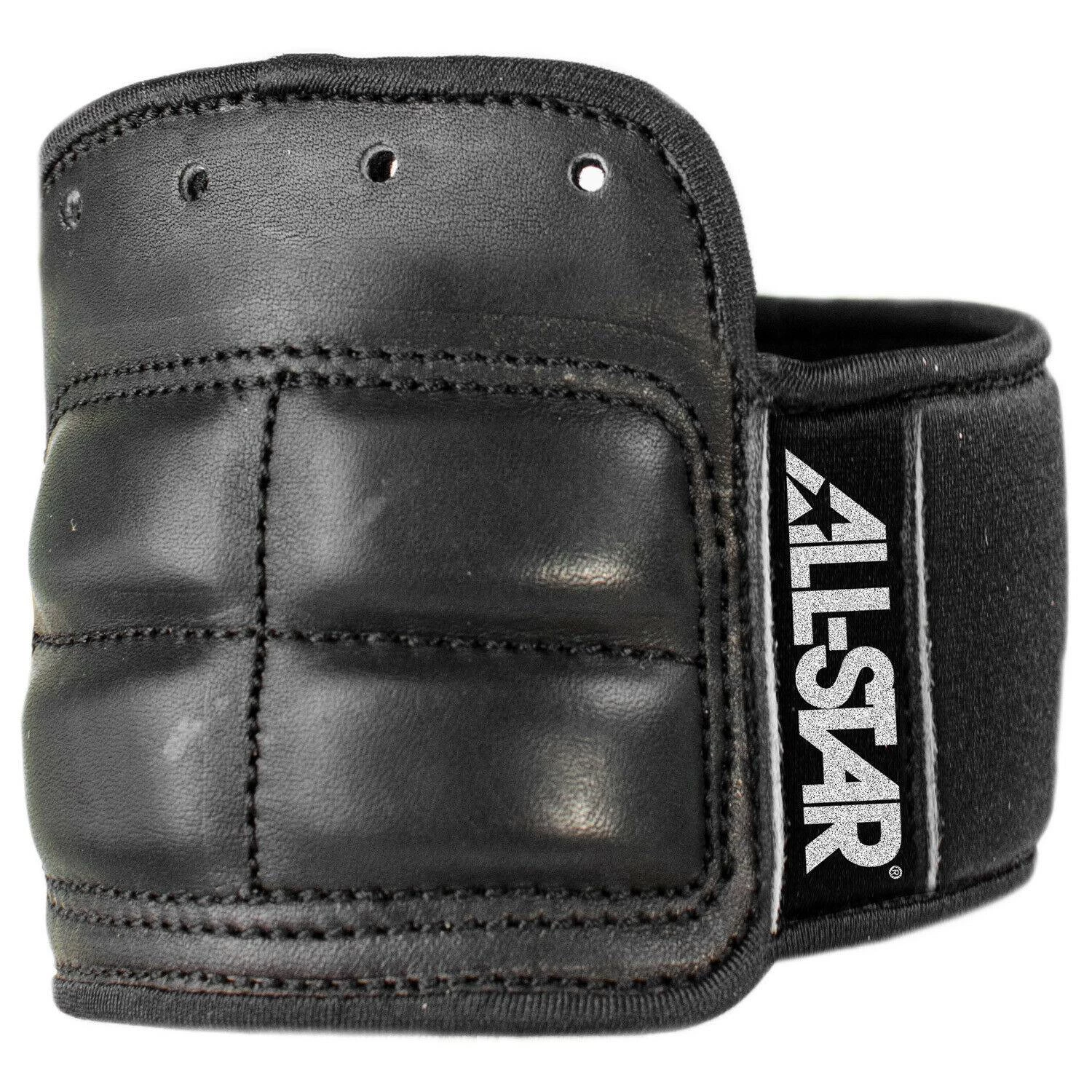 The All Star Pro 3.5″ Lace On Wrist Guard With Strap provides additional protection for player’s wrists, especially catchers. It laces directly into your fielding glove with either the gloves original lace or +the included lace. A velcro strap attaches it to the player’s wrist each time the glove is put on.