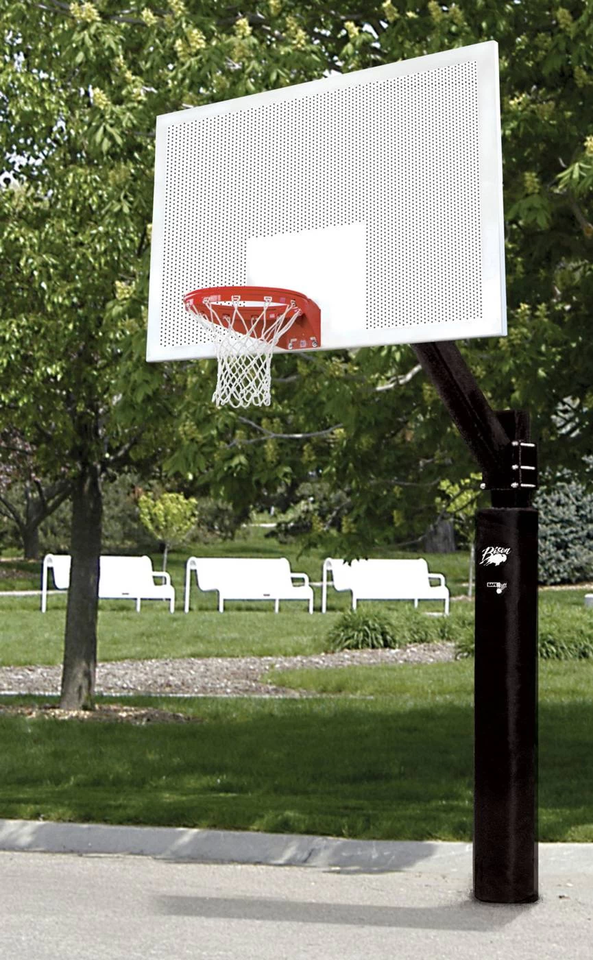 The Bison Perforated Steel Basketball System is an aluminum, in ground, fixed height basketball system featuring a 42″ x 72″ perforated steel backboard. Setback for player safety, this basketball system provides maximum stability, +durability and playability.