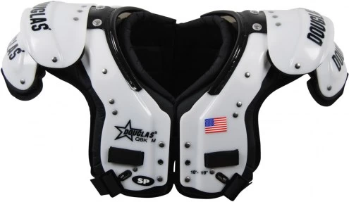 One of the lightest pads on the market, the Douglas SP Series Adult Football Shoulder Pads – PSQBK – QB / WR / DB checks in at four pounds in weight with enough +protection for faster players. The QBK model has a flexible, contoured shell that doesn’t extend too far in the front, helping to keep you moving freely, whether you’re a quarterback throwing balls or a receiver or defensive back catching them. An attached back plate offers extended protection for your lower back.