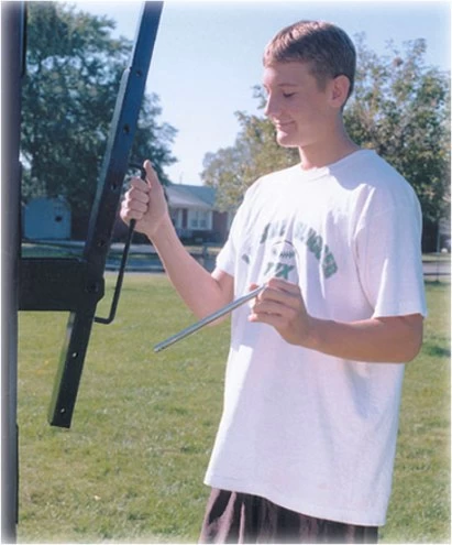 The OmniSlam is a great way to upgrade your court. Indoors or out, OmniSlam is a premium quality performing portable basketball hoop! The OmniSlam is significantly better in performance and durability than portables +found at large sporting goods chain stores. The large poly base is designed to hold up to 500 lbs. of sand for maximum stability. No more flimsy portables that blow over in the wind! The rugged 4″ square one piece 11 gauge post will not wobble and separate like sectional posts. The handy cam lever handle on the front makes one person transport simple over any hard, smooth surface. The OmniSlam is adjustable from 10′ down to 7′ in six inch increments. Adjustments are very quick by removing the slide pin on the back of the post, the spring balanced design makes rim height adjustments quick and easy. Replace the pin for play. Various backboard sizes and materials are available to choose from. For added safety, a contoured post pad is also available in an array of colors. To dress up your home court, choose First Team’s post pad custom lettering option. Because it comes from First Team, you know it’s 100% Made In the USA and that means quality. When you are looking for a portable basketball hoop to fit your performance demands that won’t break your budget, choose First Team’s affordable portable, OmniSlam!