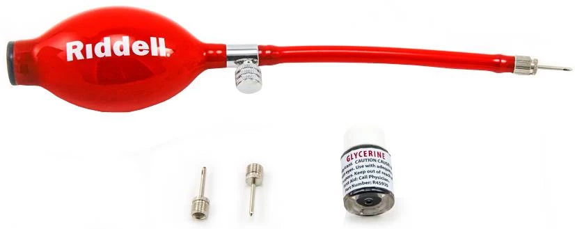 Use the Riddell Premium Football Helmet Pump and Glycerin Kit combination to quickly and easily inflate or deflate your Riddell football helmet liner and jaw pads. The kit includes a properly sized 5/8″ +needle and two replacement along with the lubricating glycerin necessary for easy needle use, this combo pack is exactly what you need to fill your helmet pads with air to cushion your head and provide a secure fit during play. Please Note : The Riddell Helmet inflator pump is recommended for Riddell helmets only and may cause damage to helmets by other brands.
